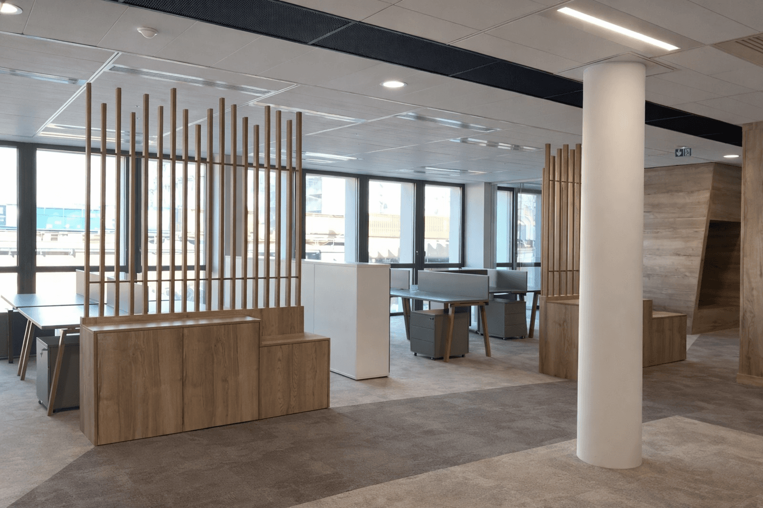 Pose complète de l’ensemble menuisé et ajustements sur site.